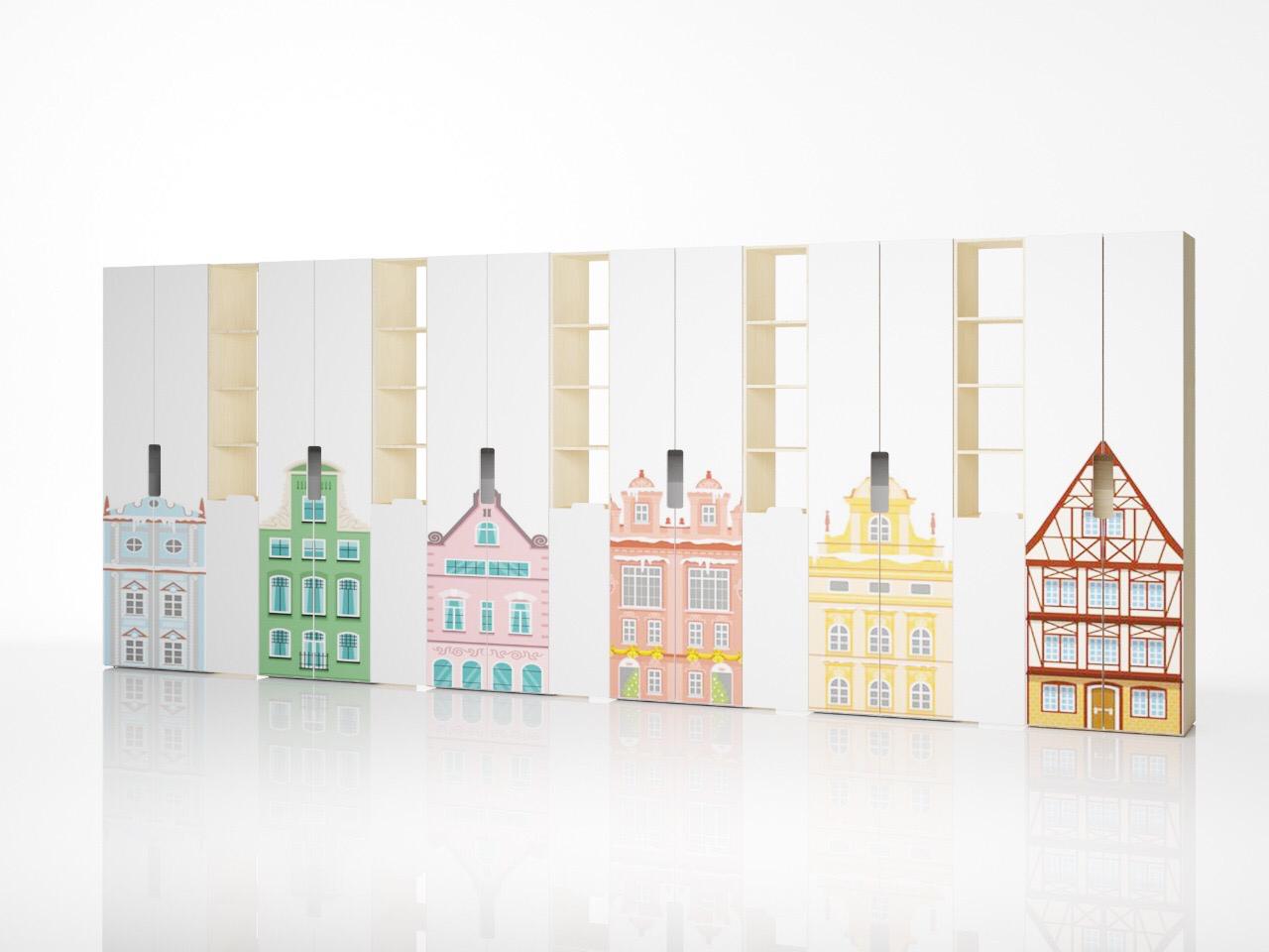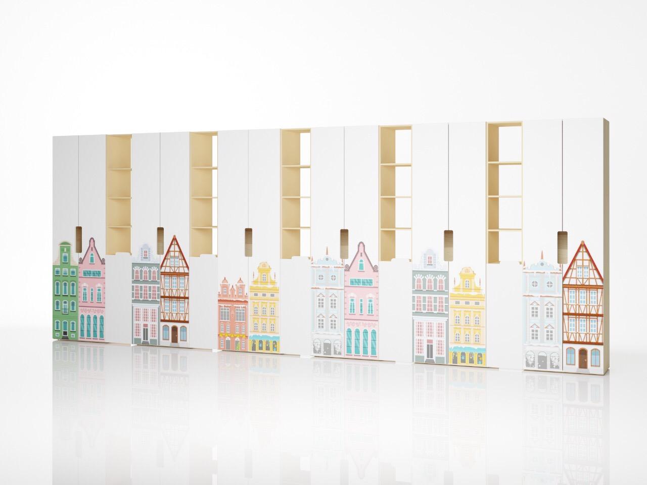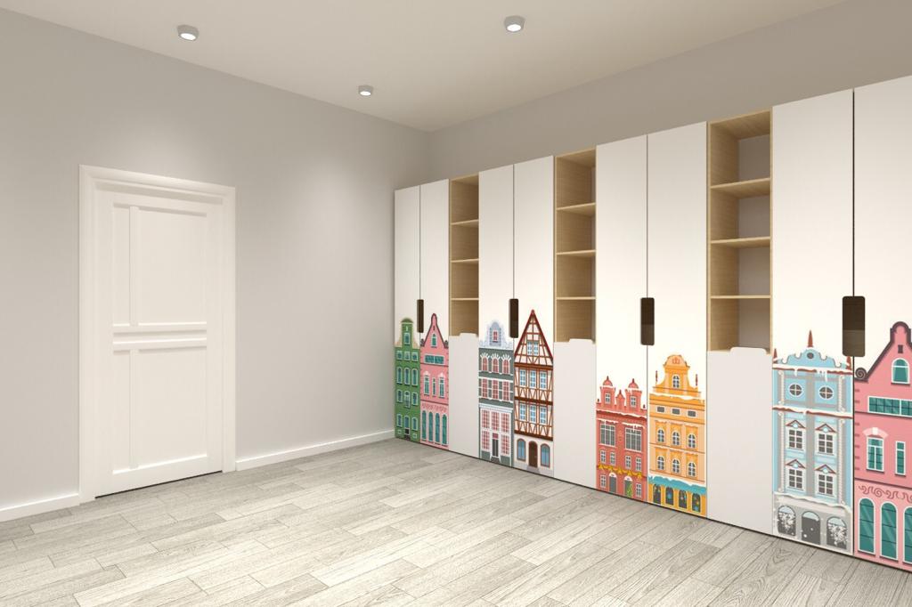 Детские двухъярусные кровати трансформер со шкафом рассчитаны на двоих. Фасад можно оформить лицензионным принтом.