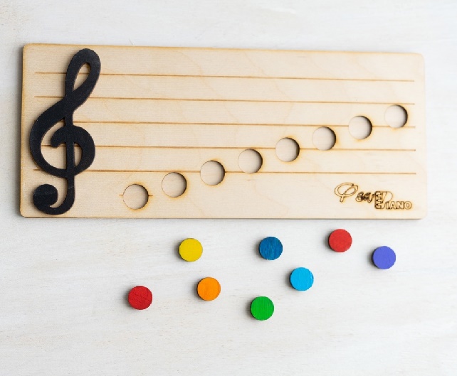 - Подходит для детей с особенностями в развитии и для слабовидящих детей. Линейки нотного стана прорезаны таким образом, что бы ребёнок мог на ощупь их определять.