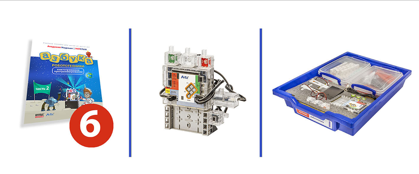 3. Азбука робототехники (занятий по конструированию и программированию роботов разработано по 14 для каждого направления). Для удобства использования и сбора деталей к набору прилагается стойка на 9 ячеек. Методические пособия прилагаются к каждому комплекту.