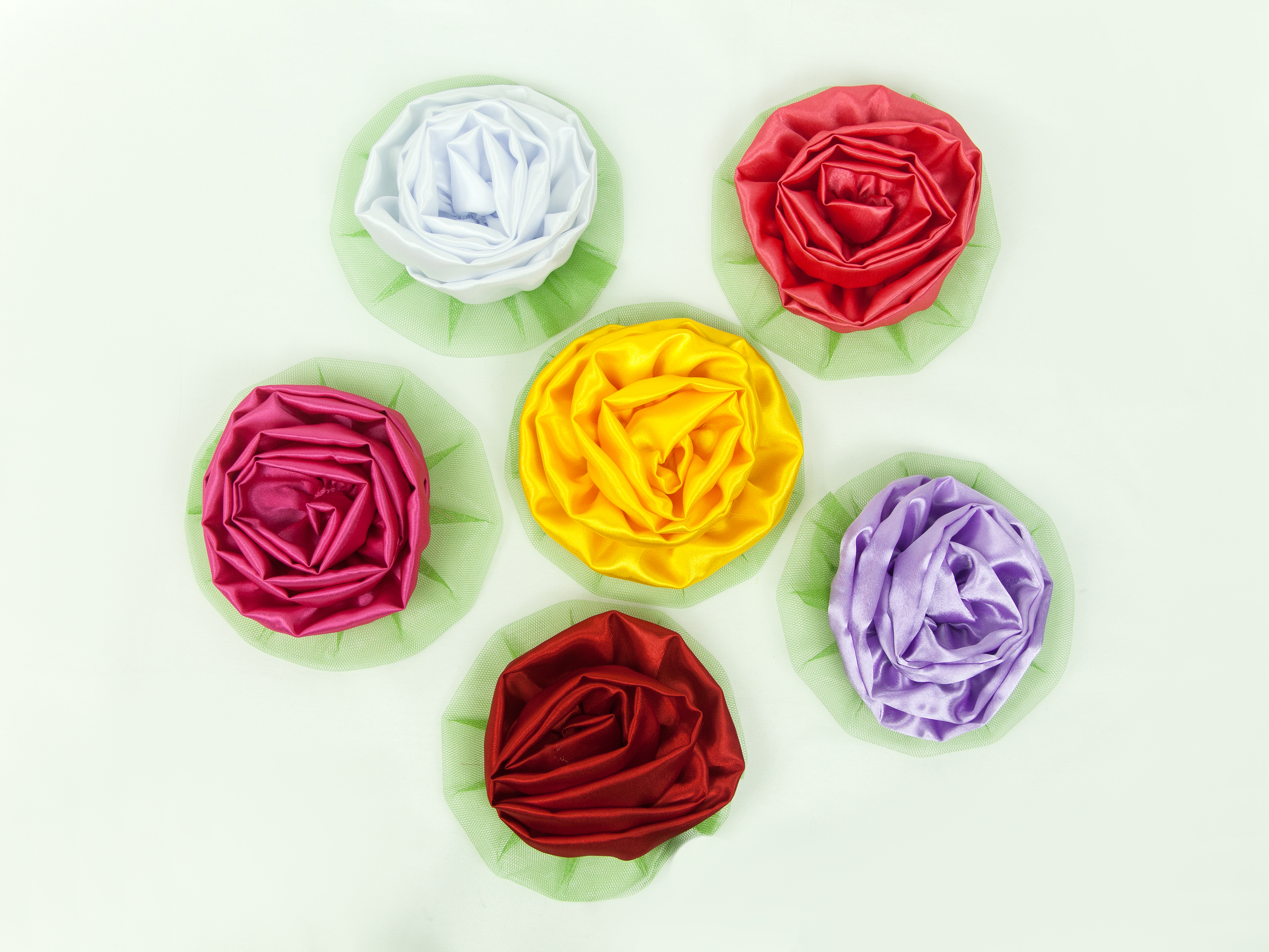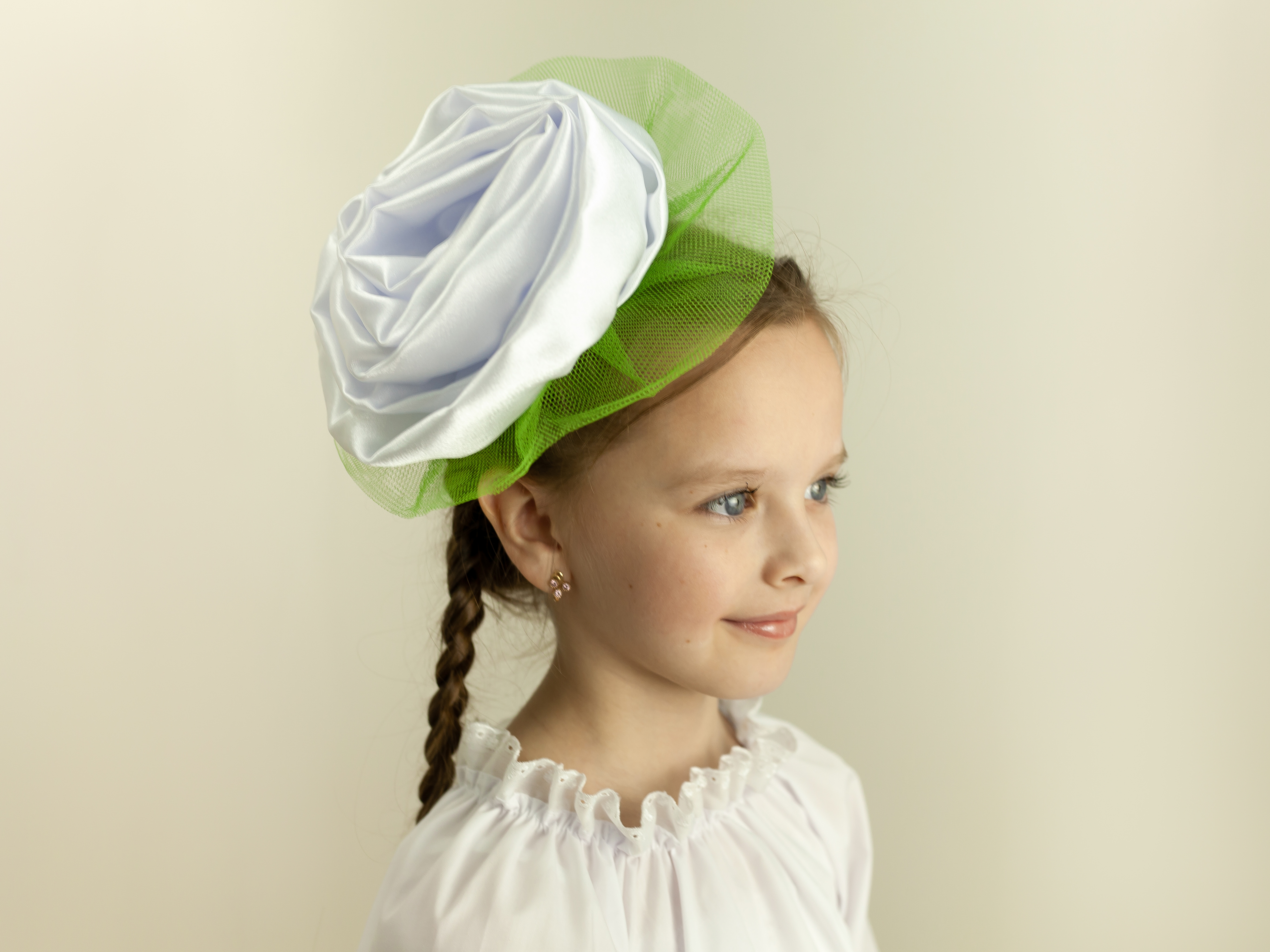 Материал — крепсатин, фатин, кринолин 100% полиэстер, резинка для волос.