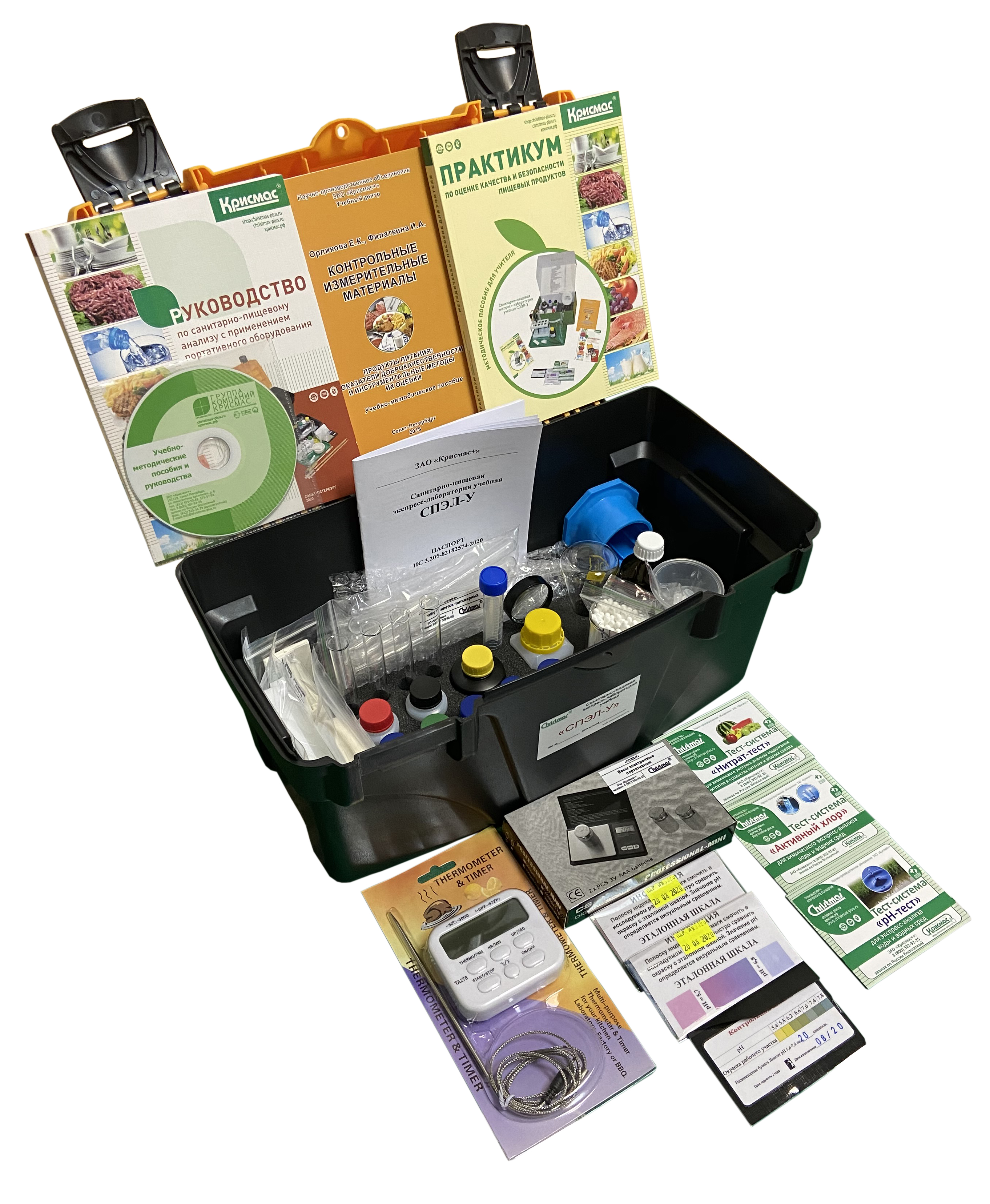СПЭЛ-У сформирована в соответствии с требованиями санитарного надзора и позволяет выполнять санитарно-пищевое обследование принятыми соответствующими службами полуколичественными и качественными (сигнальными) химическими методами с использованием унифицированных капельных экспресс-методов, а также методов с применением готовых индикаторных бумаг и тест-систем, разработанных и производимых ЗАО «Крисмас+».