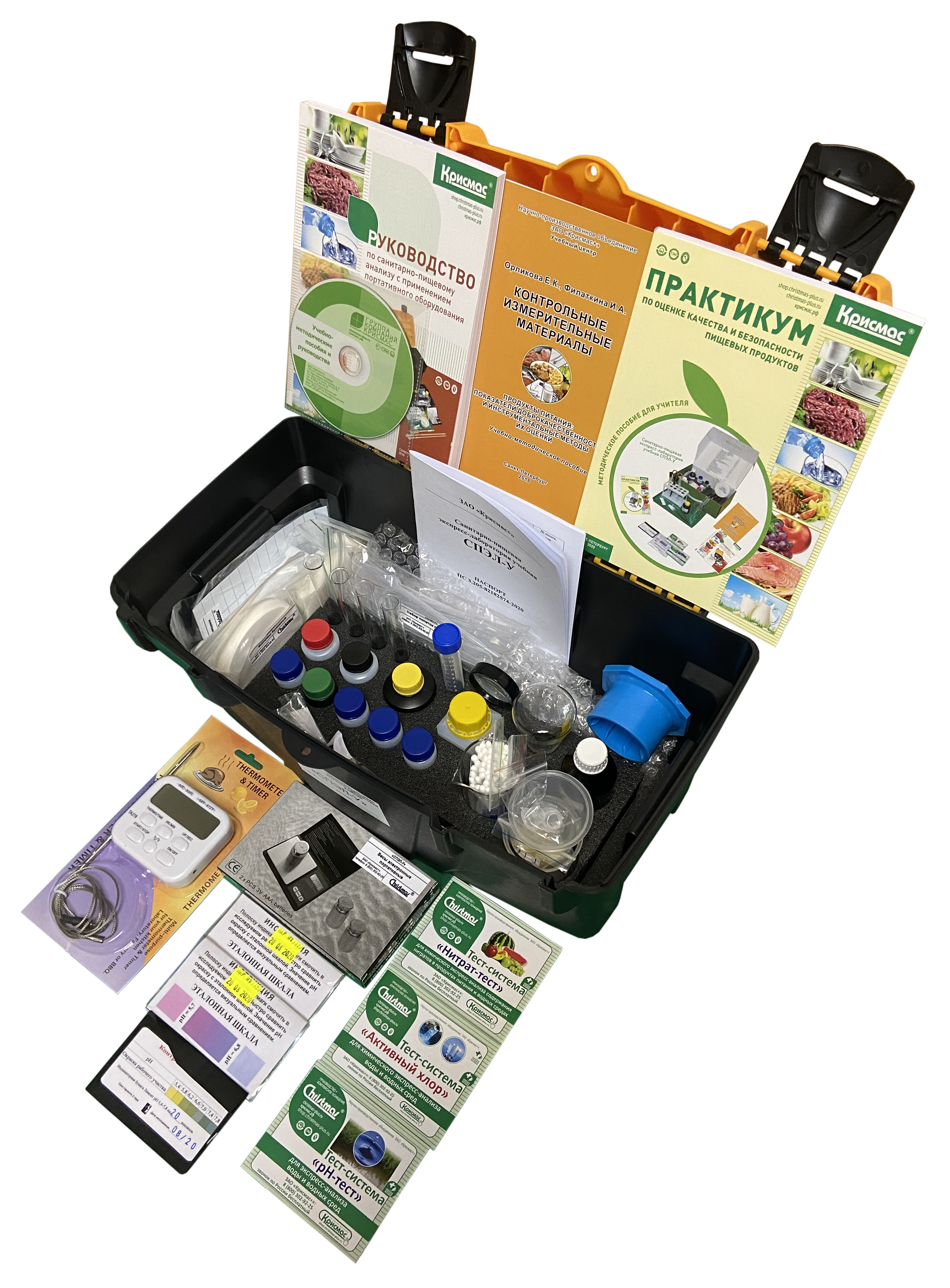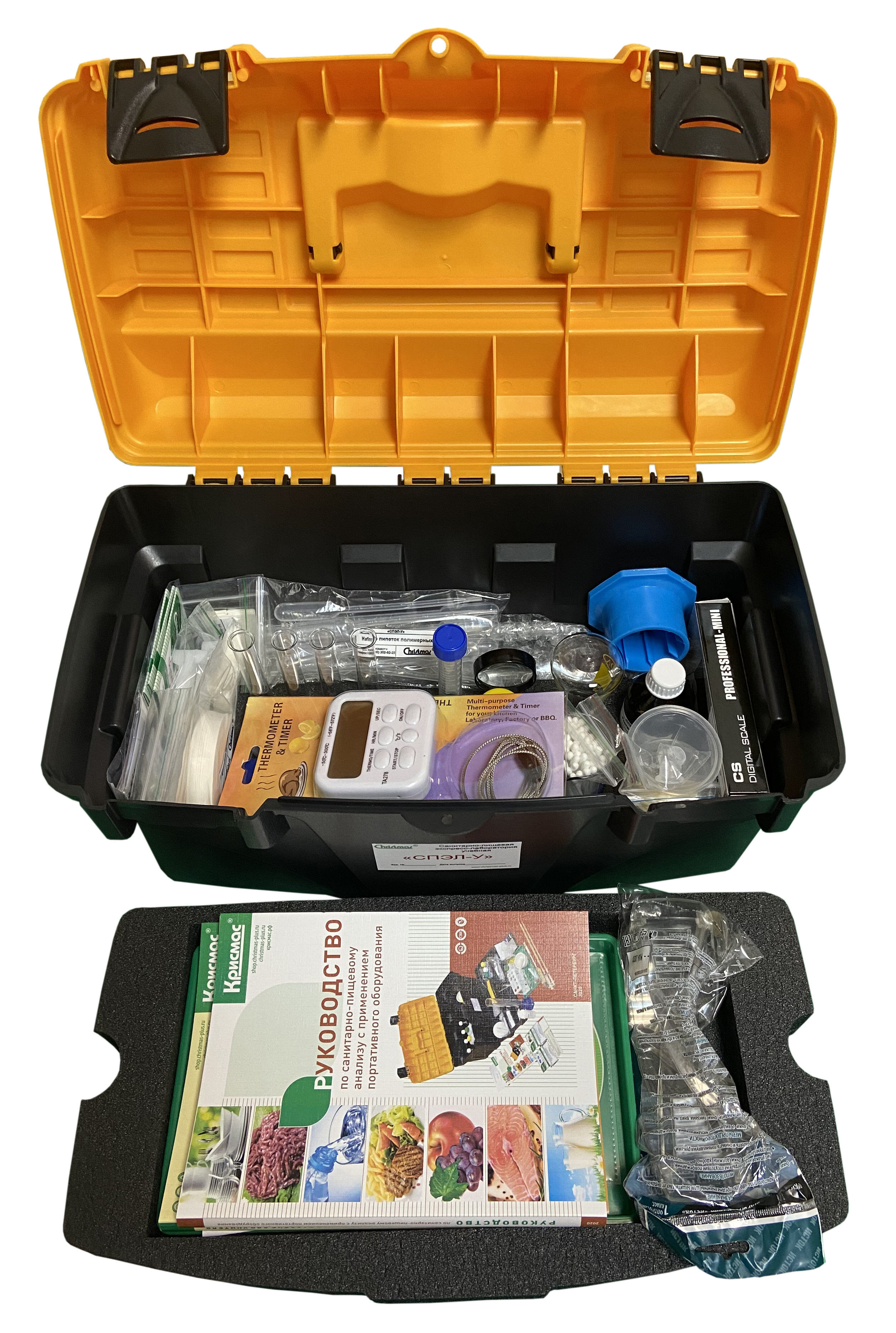 Учебная санитарно-пищевая экспресс-лаборатория СПЭЛ-У представляет собой набор тестовых средств для исследований санитарного состояния: