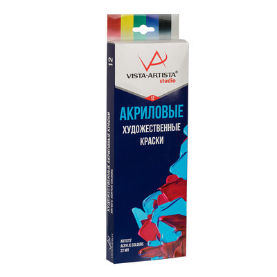 Художественные акриловые краски Vista-Artista StudioУниверсальны и удобны в обращении. Отличаются высокой светостойкостью, водо- и термоустойчивостью, а также плотным сцеплением с поверхостью. Не выгорают на солнце и не тускнеют со временем. Быстро сохнут, обладают хорошей покрывной способностью и прекрасной яркостью цвета.В наборе имеется 12 цветов по 22 мл.