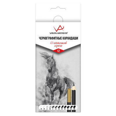 Характеристики "VISTA-ARTISTA" VAGPG-12 Чернографитные карандаши "12 оттенков серого" набор заточенный 12 шт.