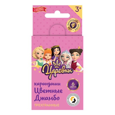 Характеристики "ВКФ" "Царевны" TSR-SJCP-6006 Набор цветных трехгранных коротких карандашей Джамбо "Царевны" заточенный 6 цв.