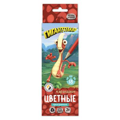 Характеристики "ВКФ" "Гигантозавр" GGZ-CP-3018 Набор цветных карандашей "Рокки" заточенный 18 цв.
