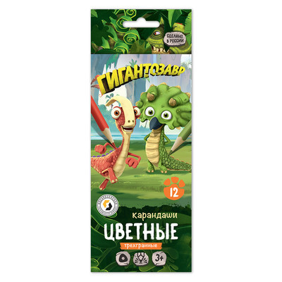 Характеристики "ВКФ" "Гигантозавр" GGZ-CP-6012 Набор цветных карандашей заточенный 12 цв.