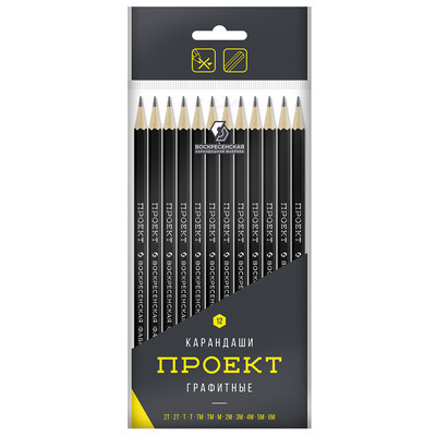 Характеристики "ВКФ" "Проект" 12P-4010 Набор графитных карандашей ОПП заточенный ассорти 12 шт.