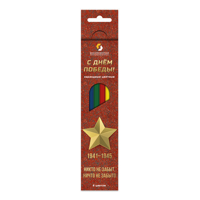 Характеристики "ВКФ" "С Днем Победы!" SUV-016 Набор цветных карандашей Звезда героя заточенный 6 цв.