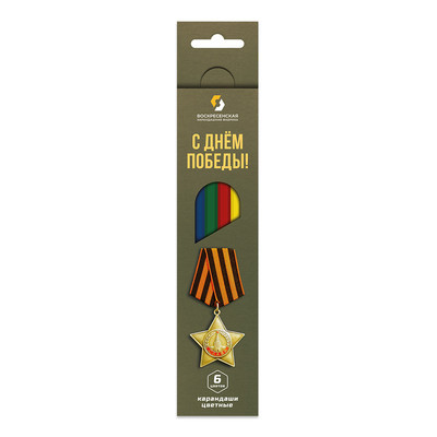 Характеристики "ВКФ" "С Днем Победы!" SUV-018 Набор цветных карандашей Орден Славы заточенный 6 цв.