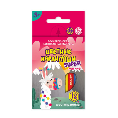 Набор цветных карандашей "Лама", 18 штук, шестигранные, диаметр 7.0 мм., длина 88 мм., отделка корпуса в цвет стержня, заточенные, в картонной коробке с европодвесом. На лицевой стороне картинки изображен срез профиля тела карандаша , относящийся к данному набору карандашей. Предназначен для графических работ любой сложности. Изготовлены из сырья и материалов природного происхождения и качественной химически необработанной древесины липы, выращенной в экологически чистых районах России. Проклейка стержня осуществлена по специальной технологии