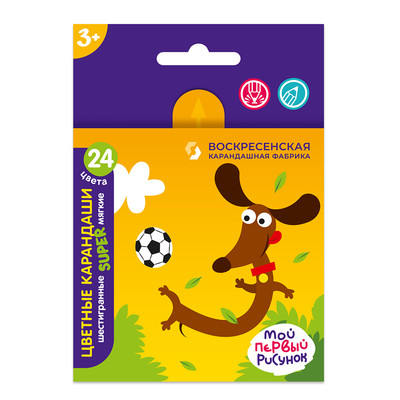 Набор цветных карандашей "Песик" 24 цв., шестигранные, диаметр 7.0 мм., длина 88 мм., отделка корпуса в цвет стержня, заточенные, в картонной коробке с европодвесом. На лицевой стороне картинки изображен срез профиля тела карандаша , относящийся к данному набору карандашей. Цветные карандаши Super предназначены для занятий рисованием с детьми, имеют прочный, но очень мягкий стержень, с отличной пигментацией и яркостью рисунка. Наборы составлены из основных цветов цветового круга.