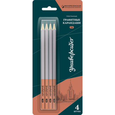 Характеристики "ВКФ" "Университет" 4BL-5100 Набор графитных карандашей трехгранные заточенный ТМ (HB) 4 шт.