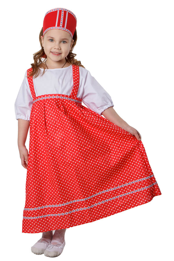 Материал: сарафан — 100% хлопок, блузка и кокошник — смесовая ткань 35 % хлопка, 65% полиэстера.