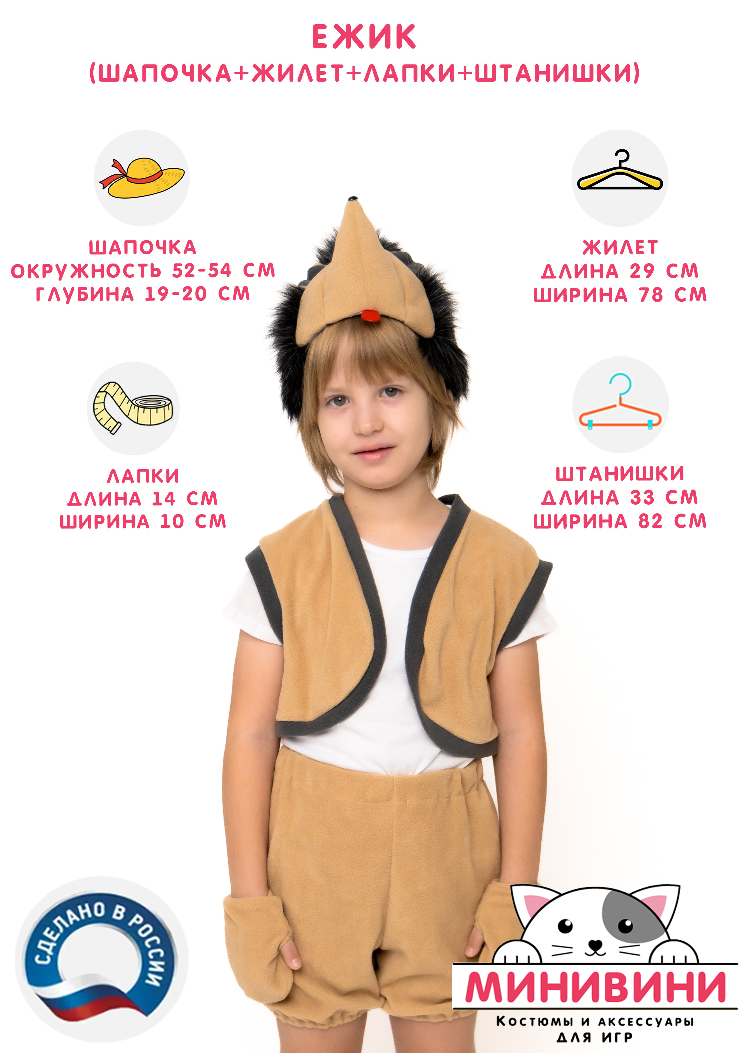 Характеристики Ёжик (шапочка + жилет + лапки + штанишки с хвостиком)