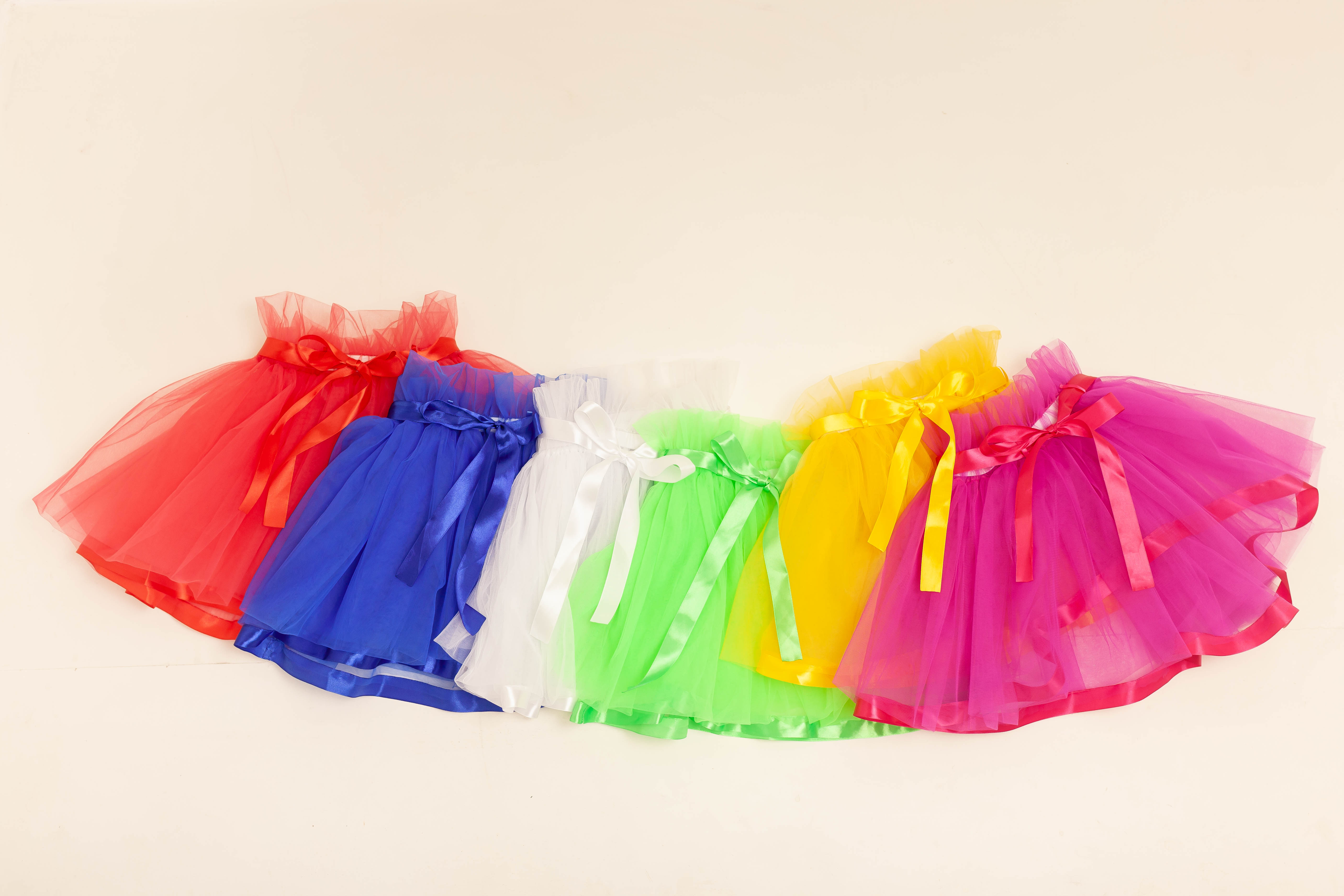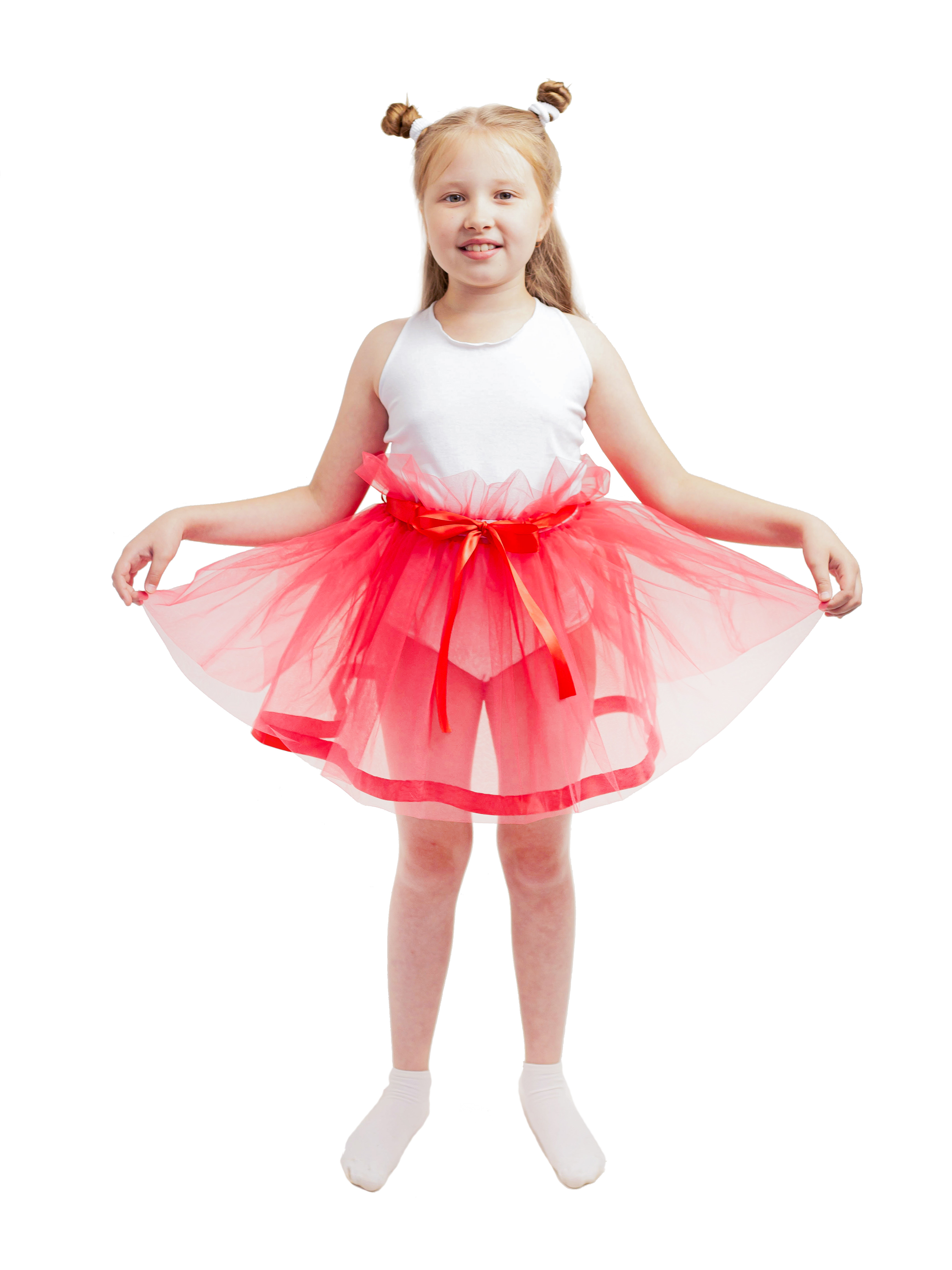 Пышная и воздушная юбочка с резинкой в поясе. Она состоит из 2-х частей. К нижней юбке пришита по низу атласная лента.