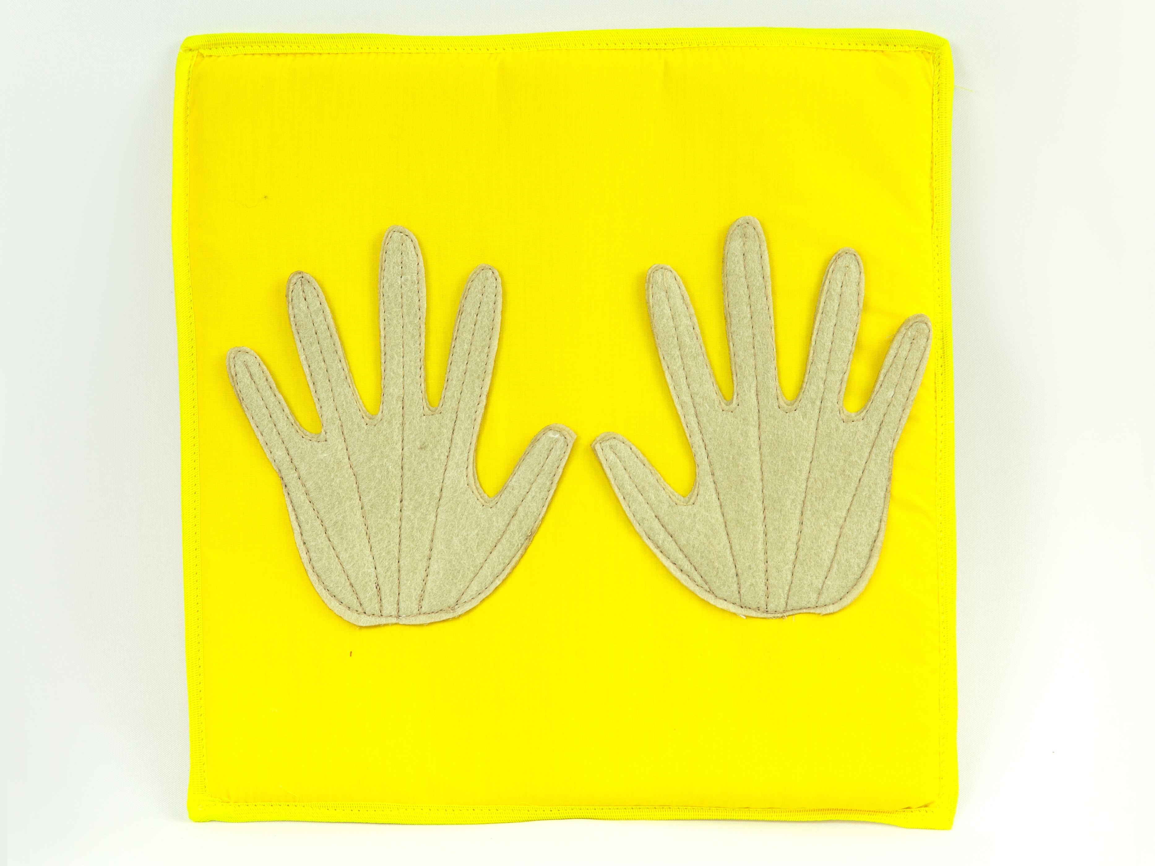2. Взрослый надевает на руку на квадрате резинки и просит ребенка надеть на другую руку на квадрате резинки в такой же последовательности.