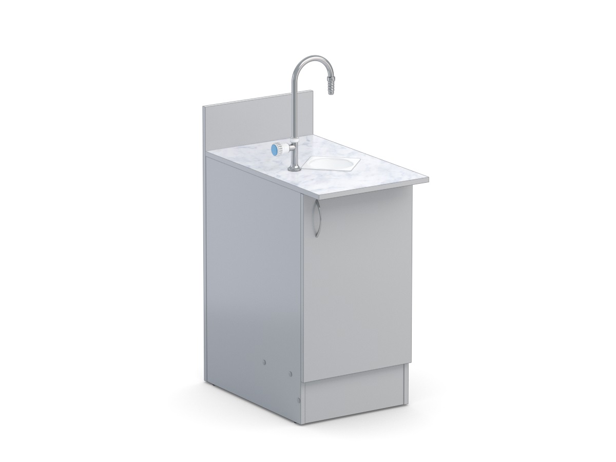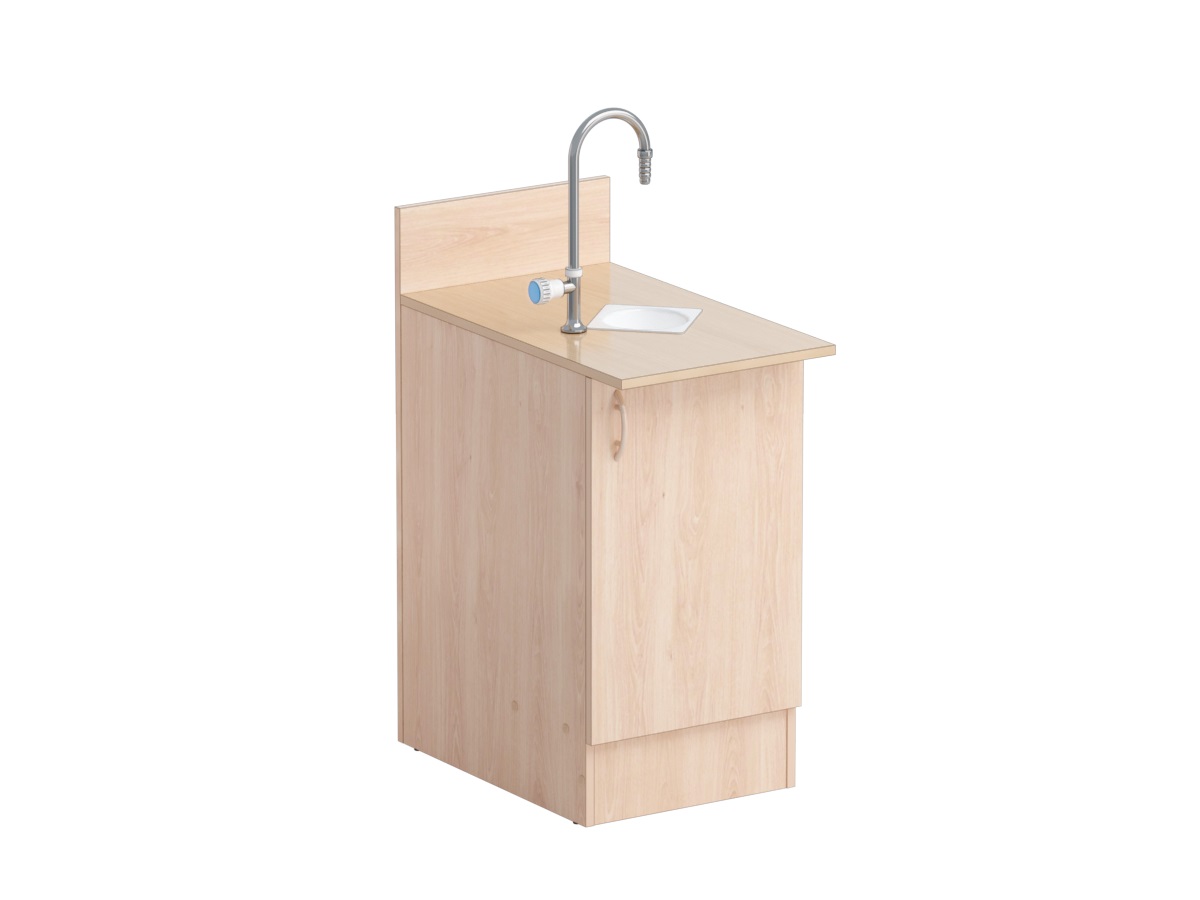 Тумба мойка ТМД изготавливается из ЛДСП 16 мм и облицована пластиком, кромка ПВХ 2 мм. Тумба оборудована водоразборной колонкой и сливной раковиной. Размер:400х700х760 мм.